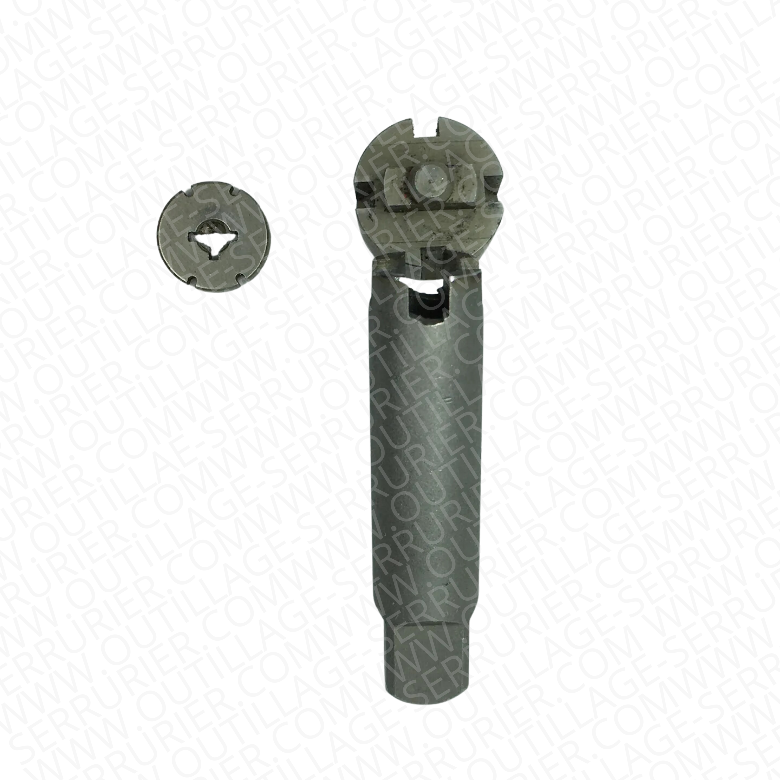 permet le broyage du délateur /pion mécanique latéral suivant extraction du bloc Nylon -fourni avec clef plate de 14.